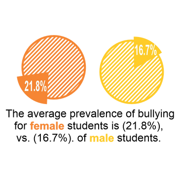 The CDC warns that Some youth experience more bullying than others. Female students, for example, are found to be more likely than male students to experience bullying, both on school property and electronically (cdc.gov, “Bullying,” n.d). Stopbullying.gov backs this up by stating that the average prevalence of bullying for female students is (21.8%), vs. (16.7%). of male students (stopbullying.gov, “Facts about Bullying” 2025).